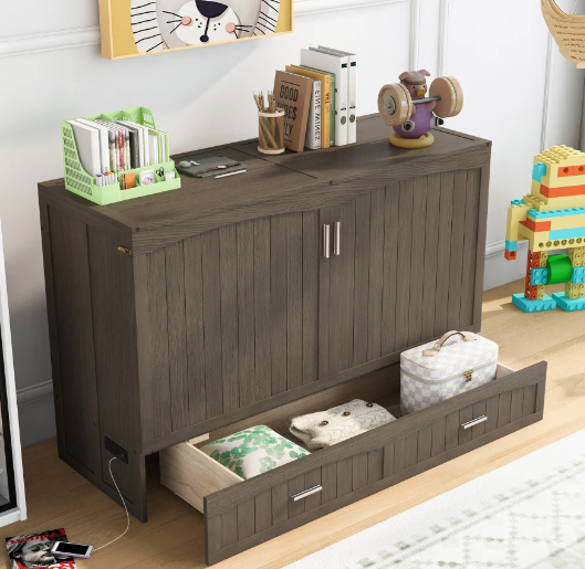 Queen Size Murphy Bed with Built-In Charging Station for kids
